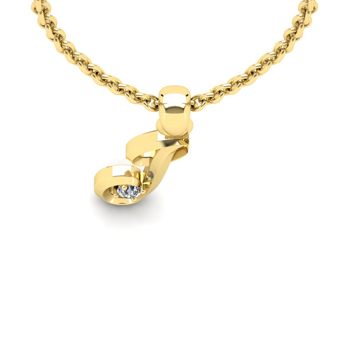 Letter J Natural Diamond Initial Necklace In 14 Karat Yellow Gold With Free Chain