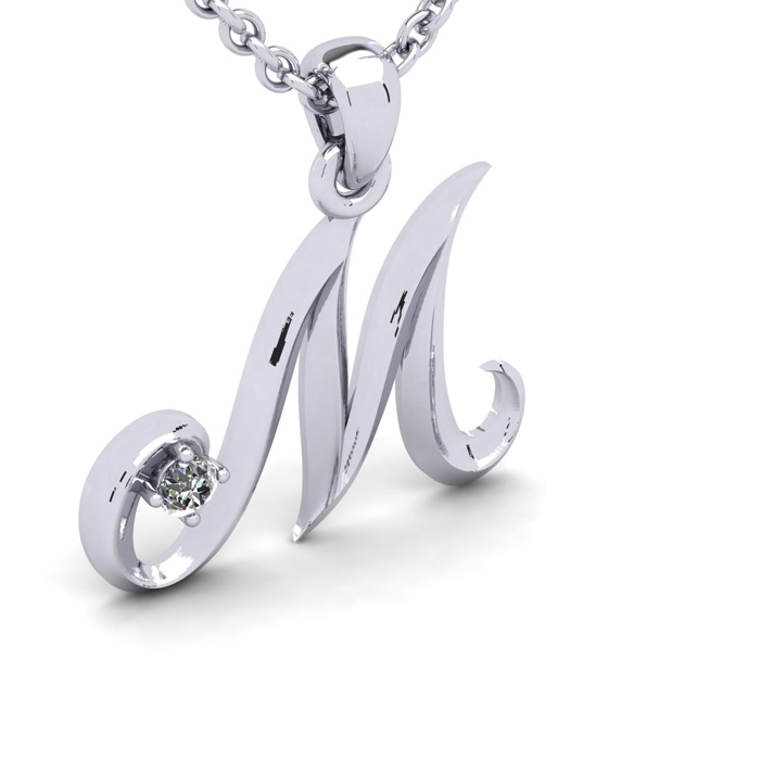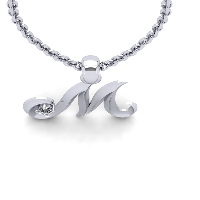 Letter M Natural Diamond Initial Necklace In 14 Karat White Gold With Free Chain