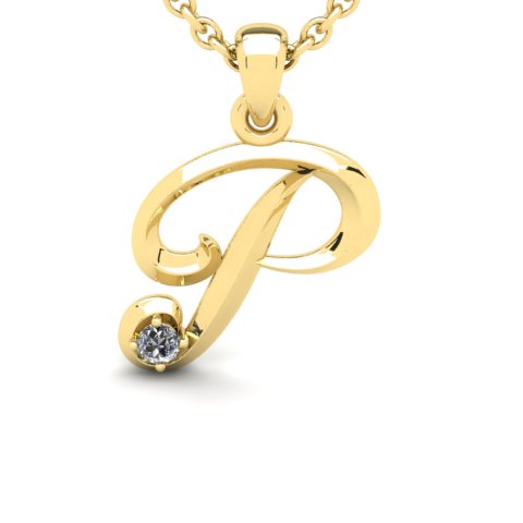 Letter P Natural Diamond Initial Necklace In 14 Karat Yellow Gold With Free Chain