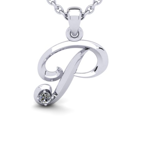Script Letter P Initial Necklace With A Nice Real Diamonds, Solid Sterling Silver