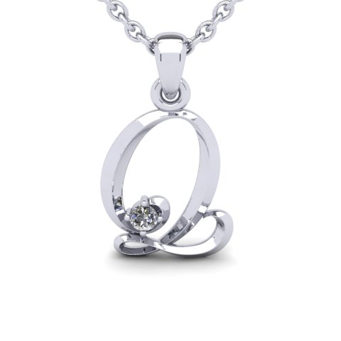Letter Q Natural Diamond Initial Necklace In 14 Karat White Gold With Free Chain