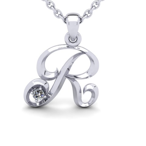 Letter R Natural Diamond Initial Necklace In 14 Karat White Gold With Free Chain