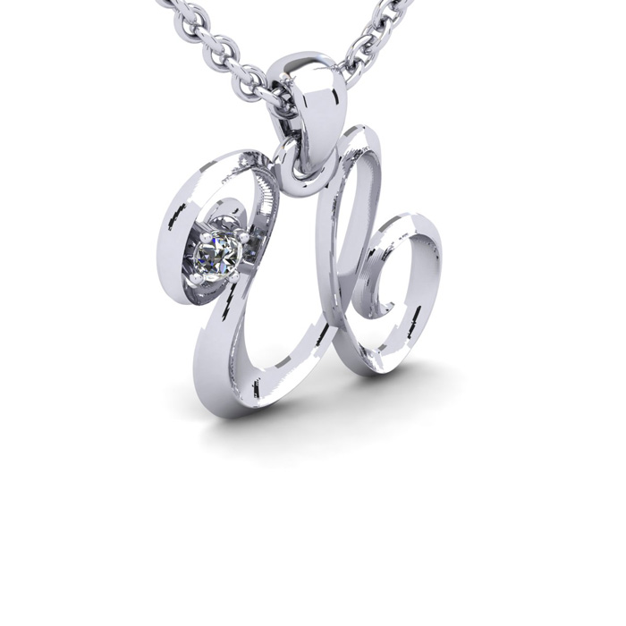 Script Letter U Initial Necklace With A Nice Real Diamonds, Solid Sterling Silver