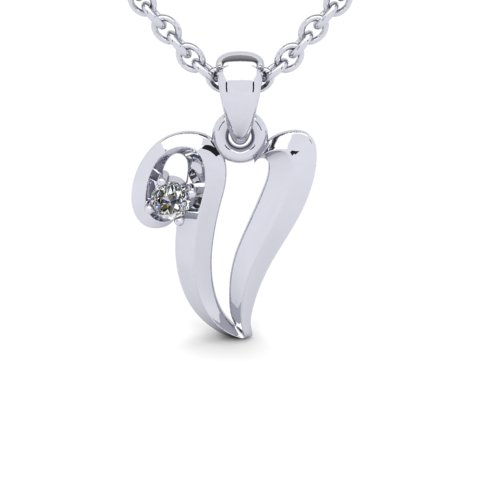 Letter V Natural Diamond Initial Necklace In 14 Karat White Gold With Free Chain