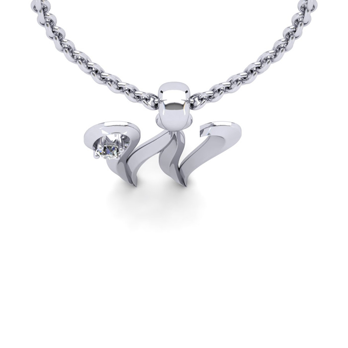 Script Letter W Initial Necklace With A Nice Real Diamonds, Solid Sterling Silver