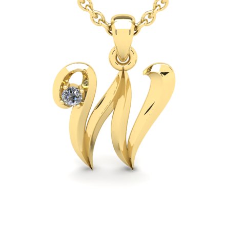 Letter W Natural Diamond Initial Necklace In 14 Karat Yellow Gold With Free Chain