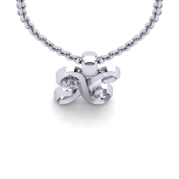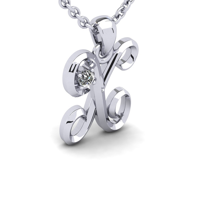 Script Letter X Initial Necklace With A Nice Real Diamonds, Solid Sterling Silver