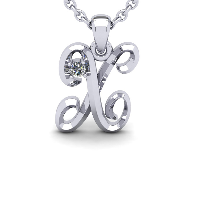 Script Letter X Initial Necklace With A Nice Real Diamonds, Solid Sterling Silver