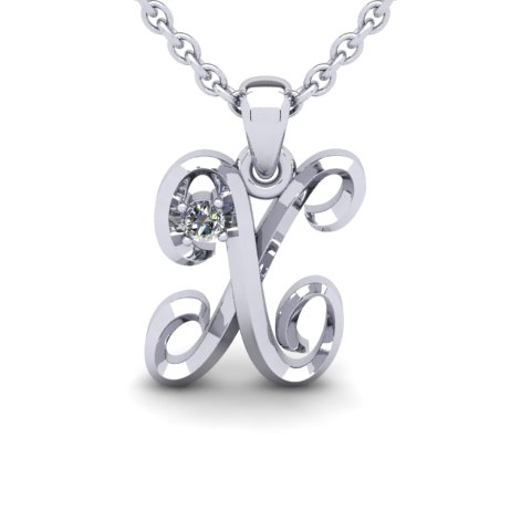 Letter X Natural Diamond Initial Necklace In 14 Karat White Gold With Free Chain