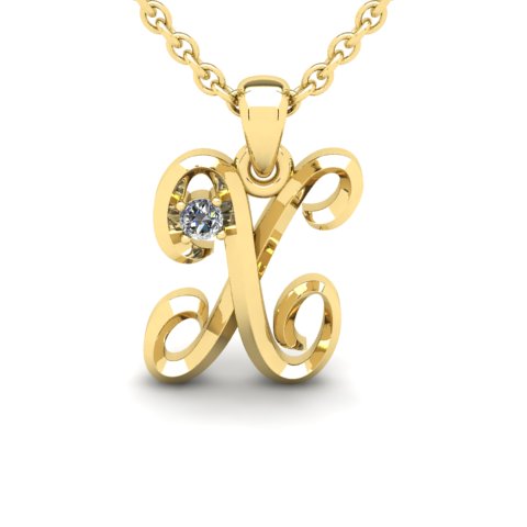 Letter X Natural Diamond Initial Necklace In 14 Karat Yellow Gold With Free Chain