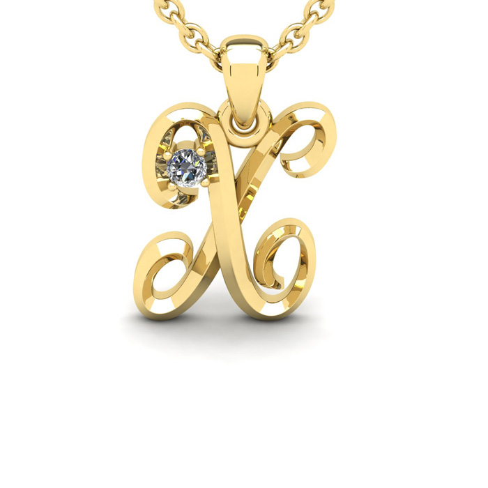 Letter X Natural Diamond Initial Necklace In 14 Karat Yellow Gold With Free Chain