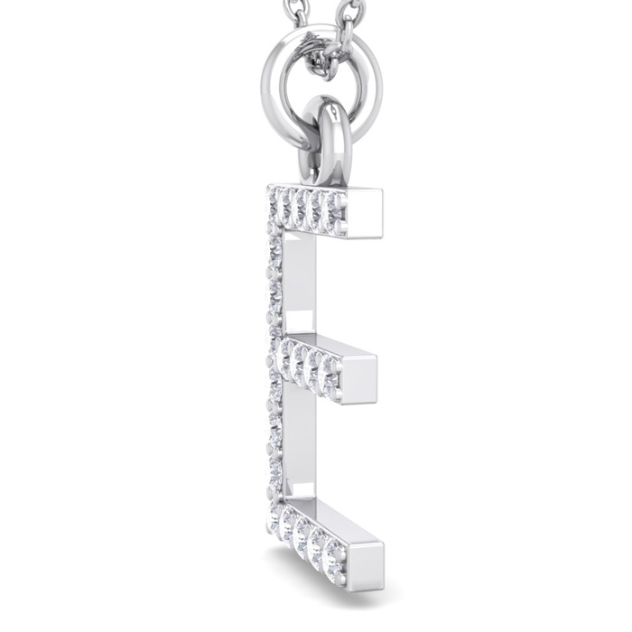 Letter E Diamond Initial Necklace In 14 Karat White Gold With 20 Natural Diamonds