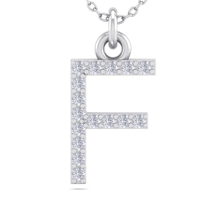 Letter F Diamond Initial Necklace In 14 Karat White Gold With 16 Natural Diamonds