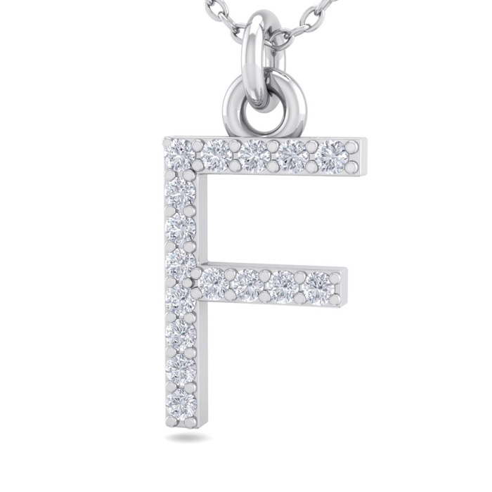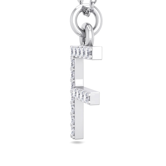 Letter F Diamond Initial Necklace In 14 Karat White Gold With 16 Natural Diamonds