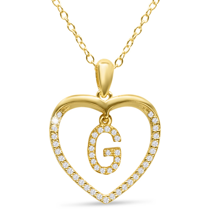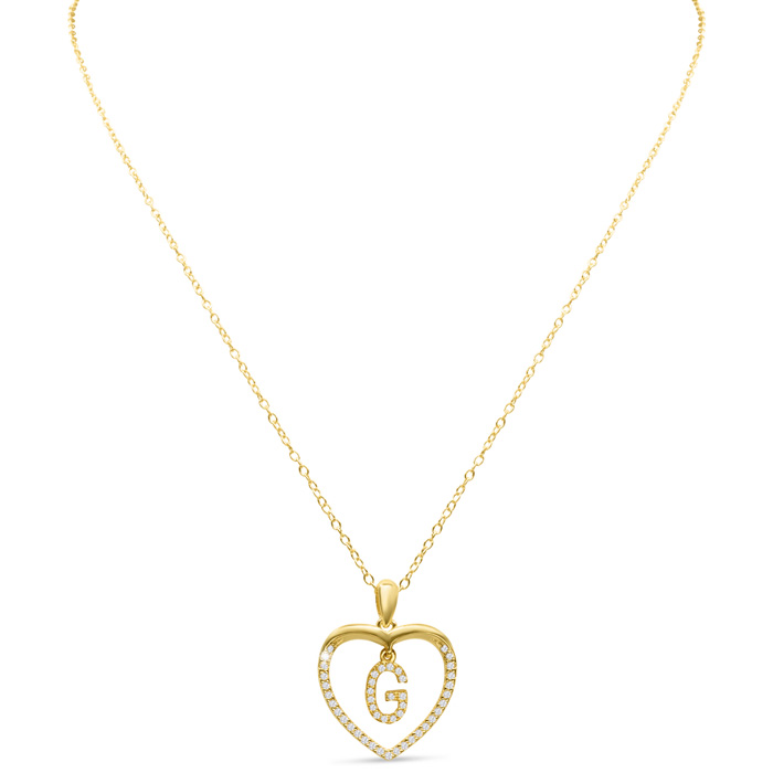Estate Letter G 1/5ct Diamond Initial Necklace In Yellow Gold Over Sterling Silver, 16 Inches