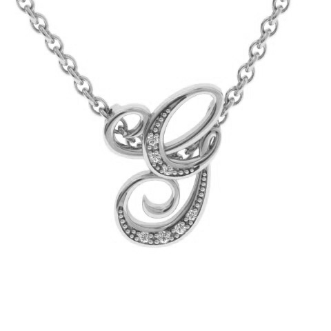 The G initial necklace you have been waiting for! Check out our newest initial series in solid 10 karat white gold with 7 shimmering diamonds, including an 18 inch cable-rope chain with spring-ring clasp. Diamond color I-J, diamond clarity I2-I3.