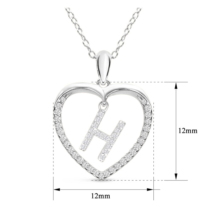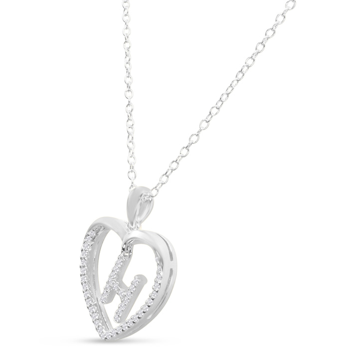 Letter H 1/5ct Diamond Initial Necklace In Sterling Silver, 16 Inches