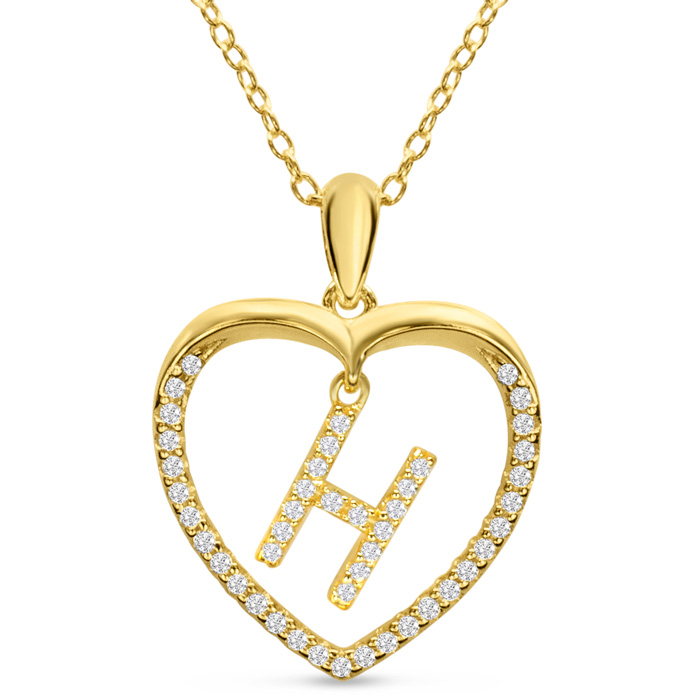 Estate Letter H 1/5ct Diamond Initial Necklace In Yellow Gold Over Sterling Silver, 16 Inches