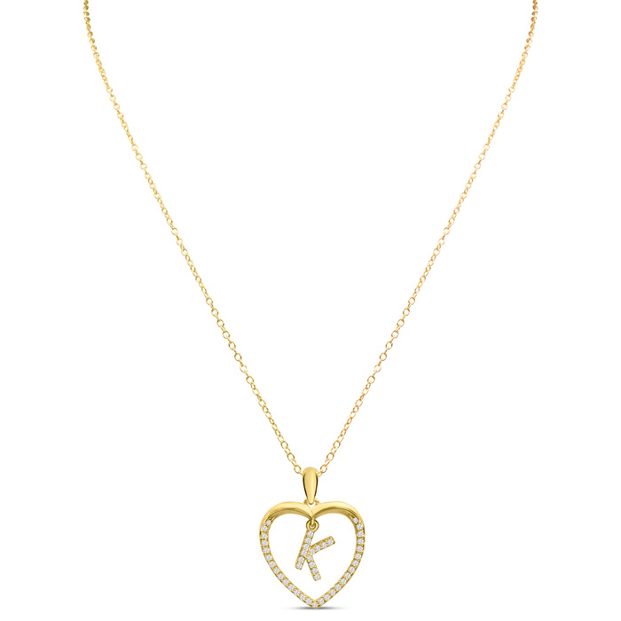 Estate Letter K 1/5ct Diamond Initial Necklace In Yellow Gold Over Sterling Silver, 16 Inches