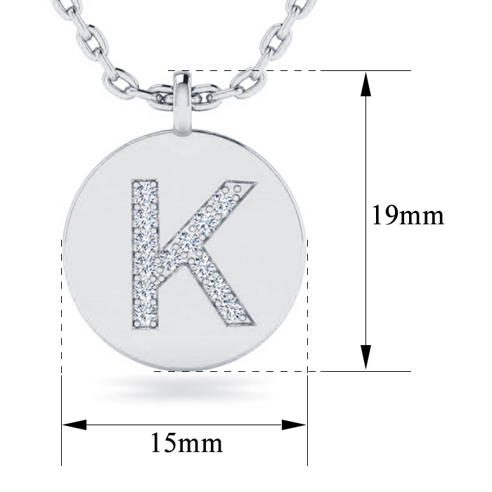 Letter K Diamond Initial Necklace In 14K White Gold With 13 Natural Diamonds
