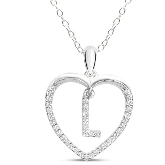 Letter L 1/5ct Diamond Initial Necklace In Sterling Silver, 16 Inches