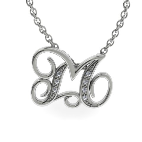The M initial necklace you have been waiting for! Check out our newest initial series in solid 10 karat white gold with 7 shimmering diamonds, including an 18 inch cable-rope chain with spring-ring clasp. Diamond color I-J, diamond clarity I2-I3.