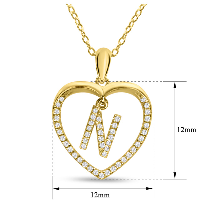 This amazing diamond initial necklace features approximately 36-50 sparkling diamonds in I-J color, I1-I2 clarity. Total diamond weight is approximately 1/5 carat. This diamond initial necklace is in yellow gold over sterling silver and comes with an 16 inch cable chain with a one inch extender and a spring-ring clasp. This pendant is 1/2 inch in diameter.