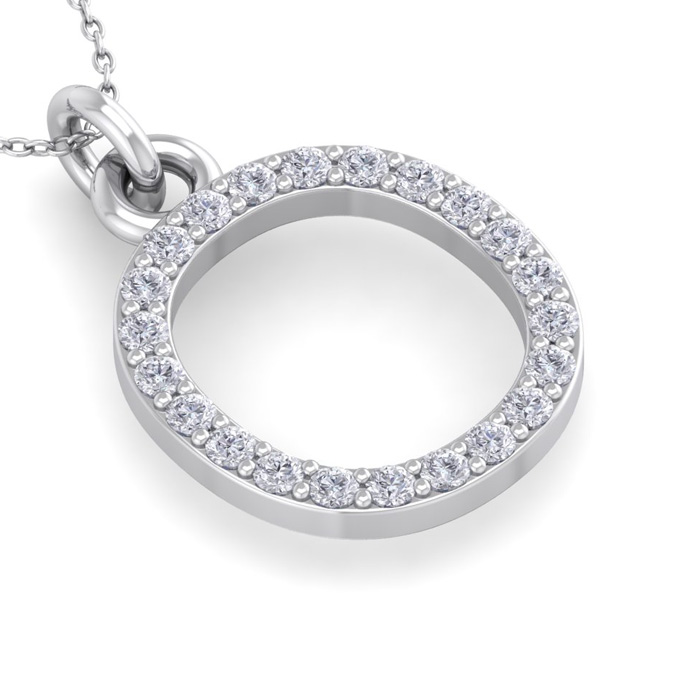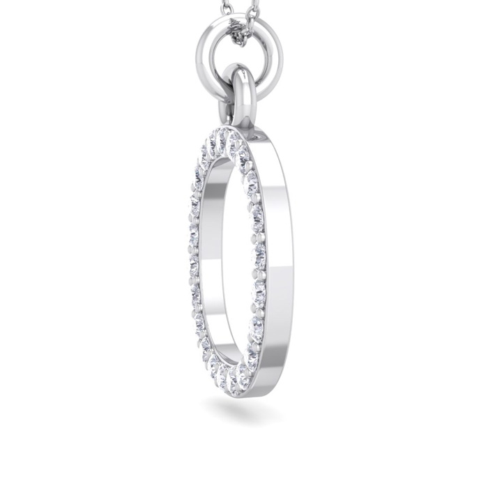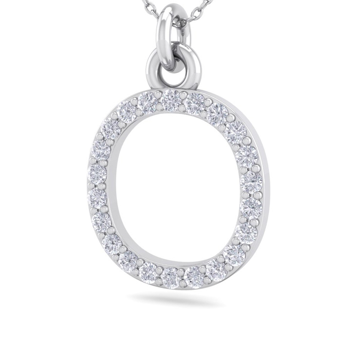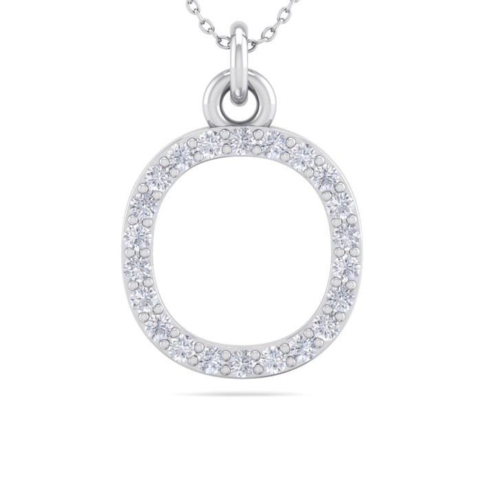 Letter O Diamond Initial Necklace In 14 Karat White Gold With 22 Natural Diamonds