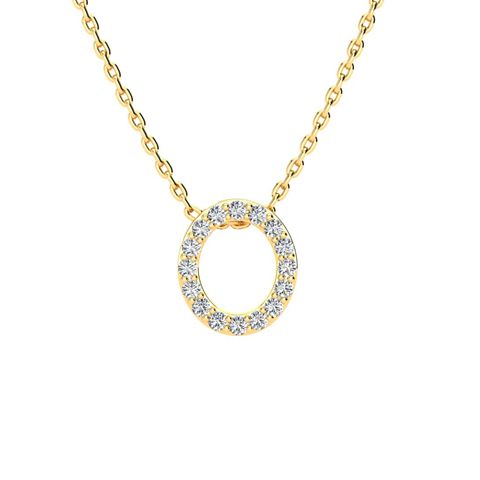 Letter O Diamond Initial Necklace In 14K Yellow Gold With 13 Natural Diamonds