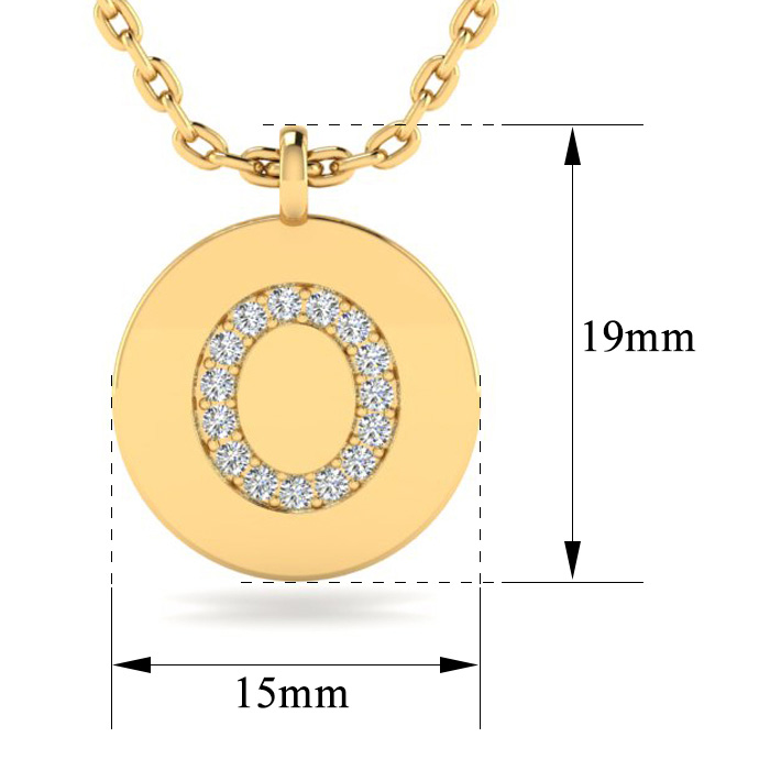 Letter O Diamond Initial Necklace In 14K Yellow Gold With 16 Natural Diamonds