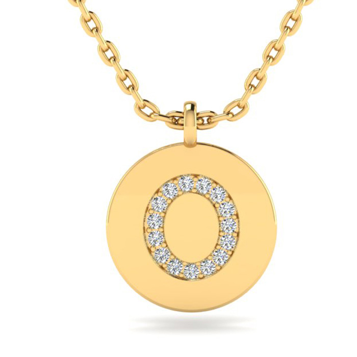 Letter O Diamond Initial Necklace In 14K Yellow Gold With 16 Natural Diamonds