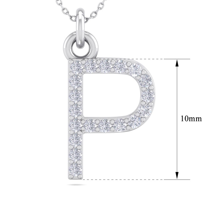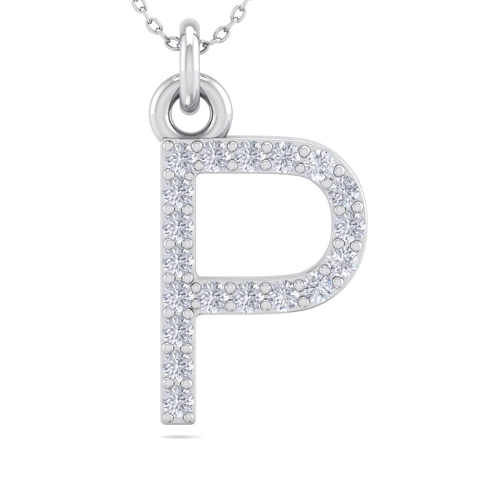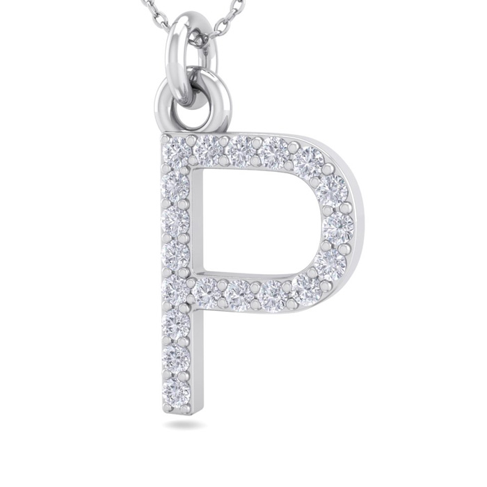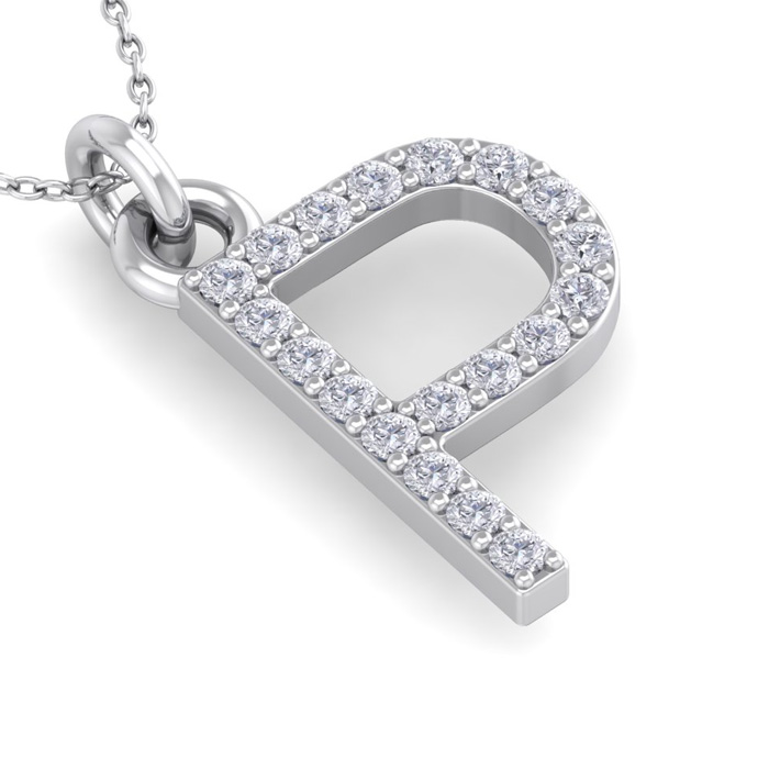 Letter P Diamond Initial Necklace In 14 Karat White Gold With 19 Natural Diamonds