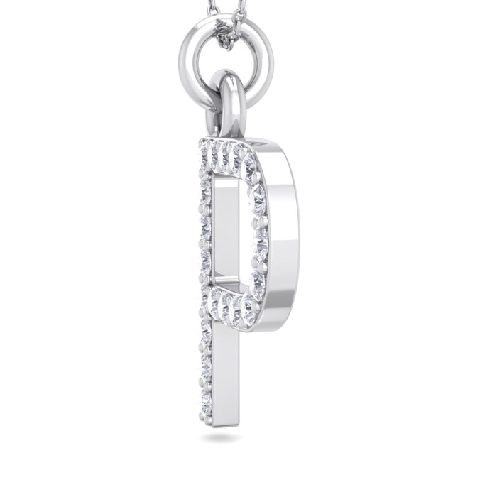 Letter P Diamond Initial Necklace In 14 Karat White Gold With 19 Natural Diamonds