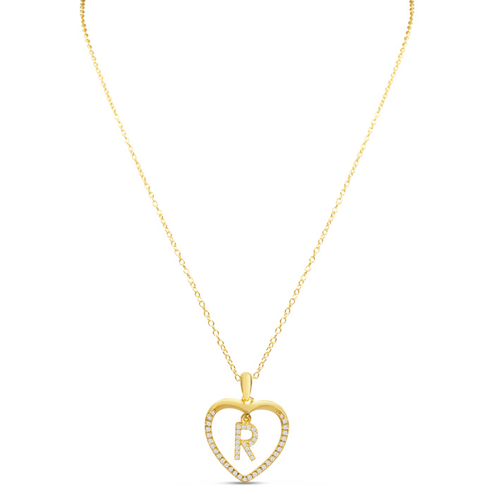 Estate Letter R 1/5ct Diamond Initial Necklace In Yellow Gold Over Sterling Silver, 16 Inches