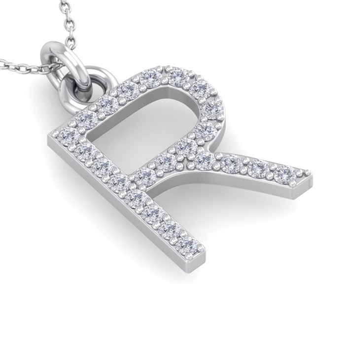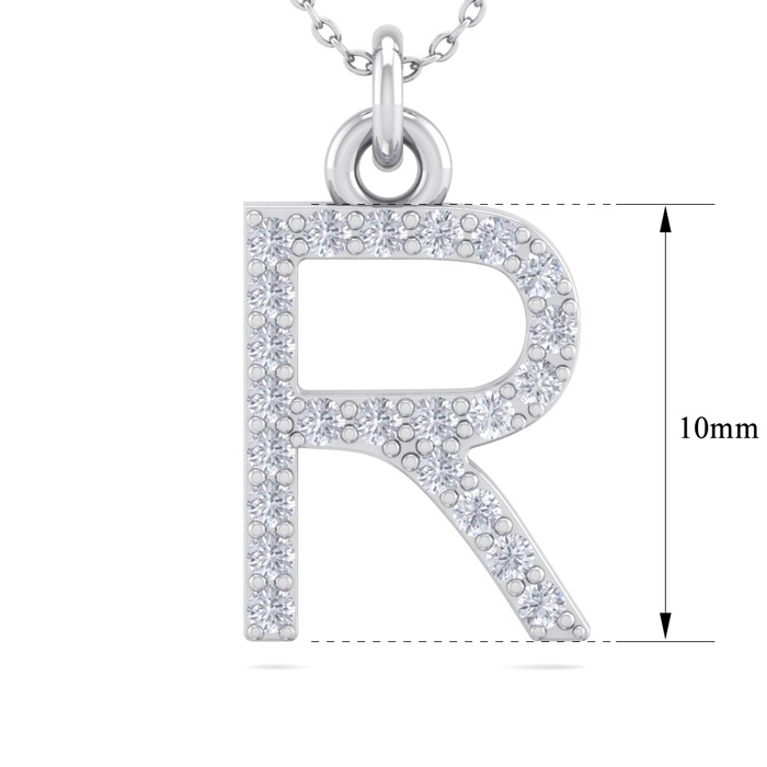 Letter R Diamond Initial Necklace In 14 Karat White Gold With 23 Natural Diamonds