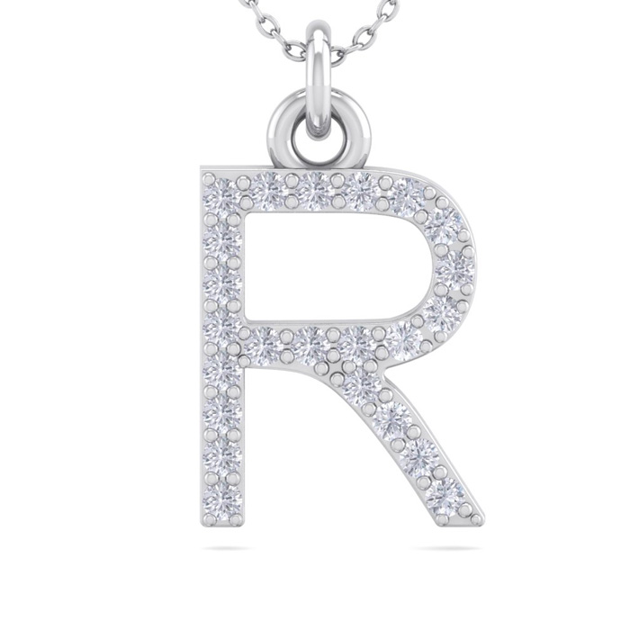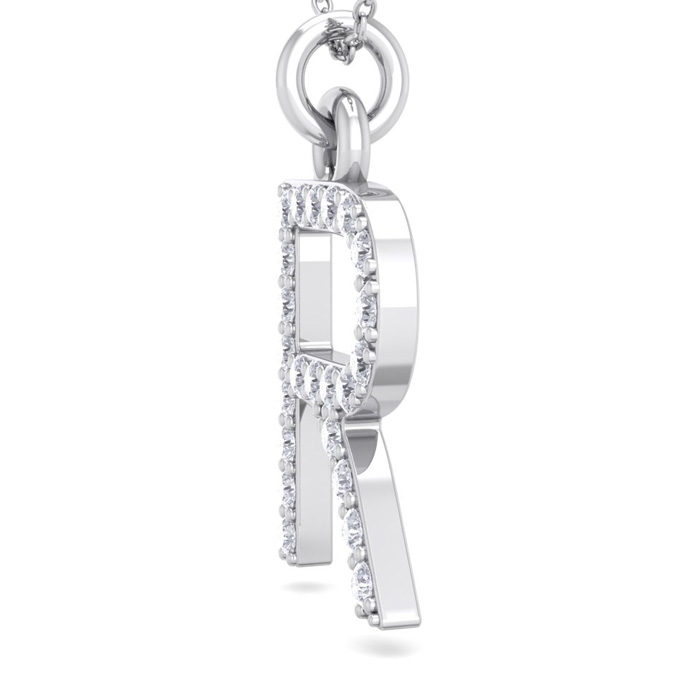 Letter R Diamond Initial Necklace In 14 Karat White Gold With 23 Natural Diamonds