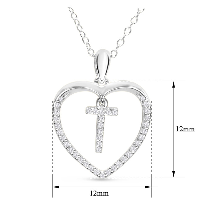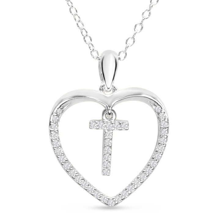 Letter T 1/5ct Diamond Initial Necklace In Sterling Silver, 16 Inches