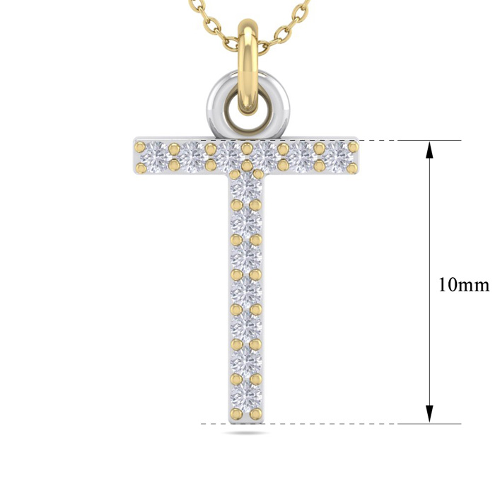 Letter T Diamond Initial Necklace In 14 Karat Yellow Gold With 13 Natural Diamonds