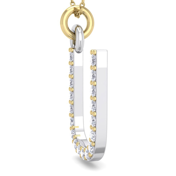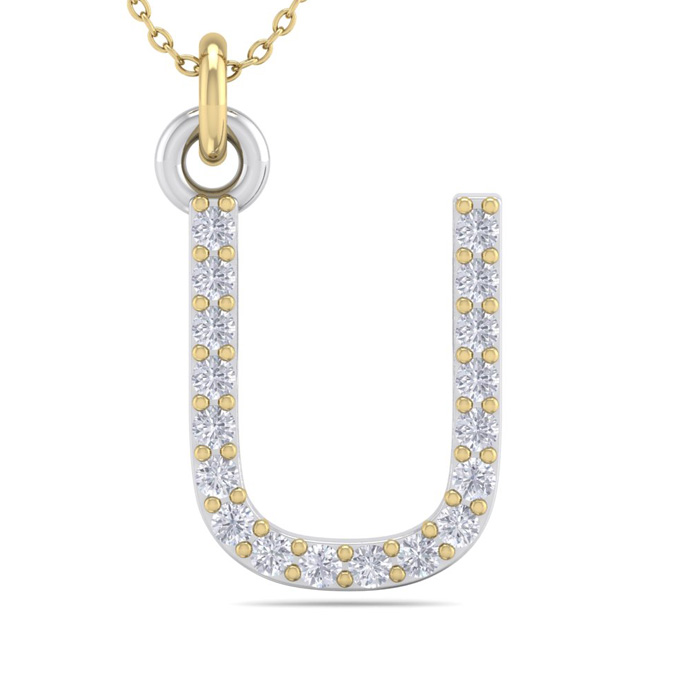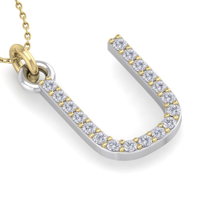 Letter U Diamond Initial Necklace In 14 Karat Yellow Gold With 18 Natural Diamonds