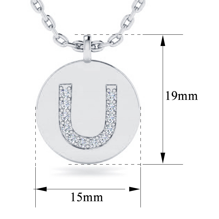 Letter U Diamond Initial Necklace In 14K White Gold With 12 Natural Diamonds