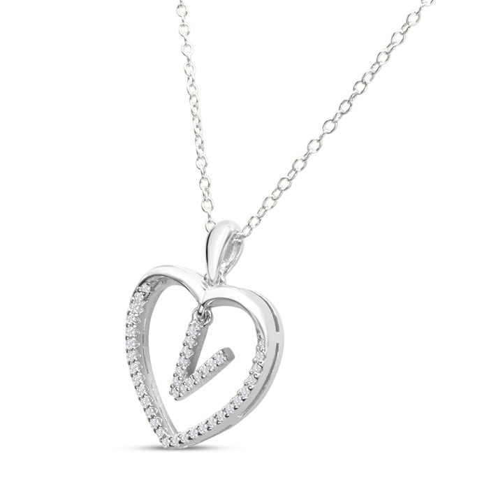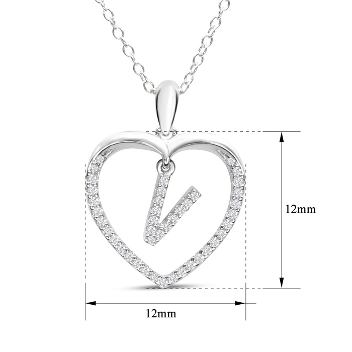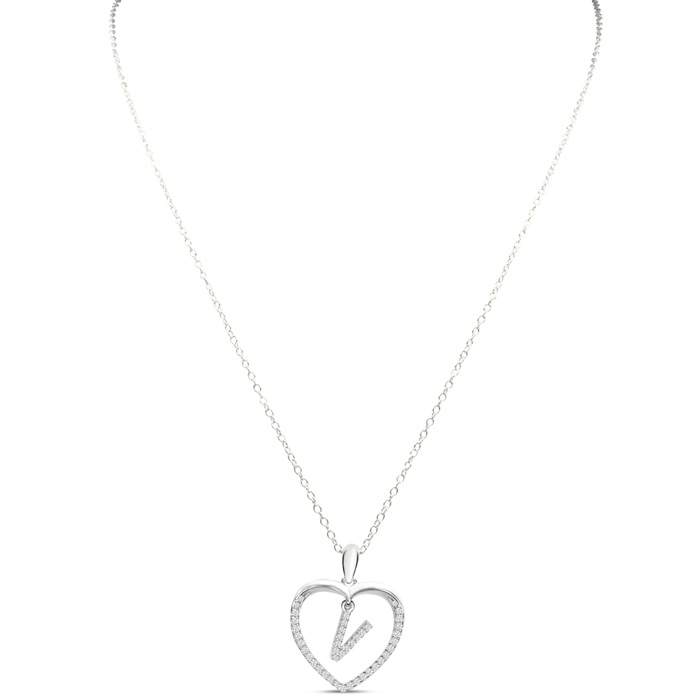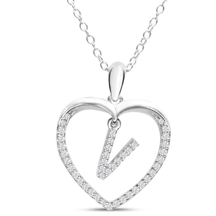 Letter V 1/5ct Diamond Initial Necklace In Sterling Silver, 16 Inches