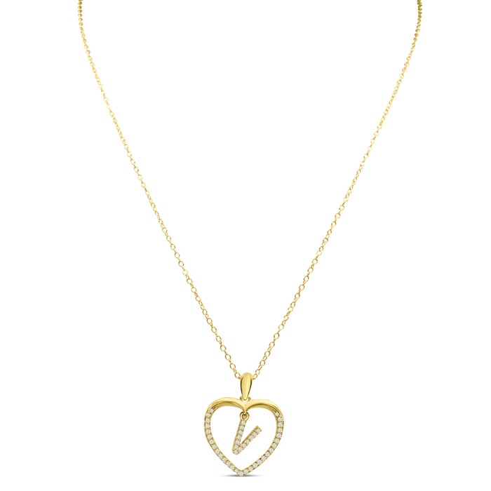 Estate Letter V 1/5ct Diamond Initial Necklace In Yellow Gold Over Sterling Silver, 16 Inches