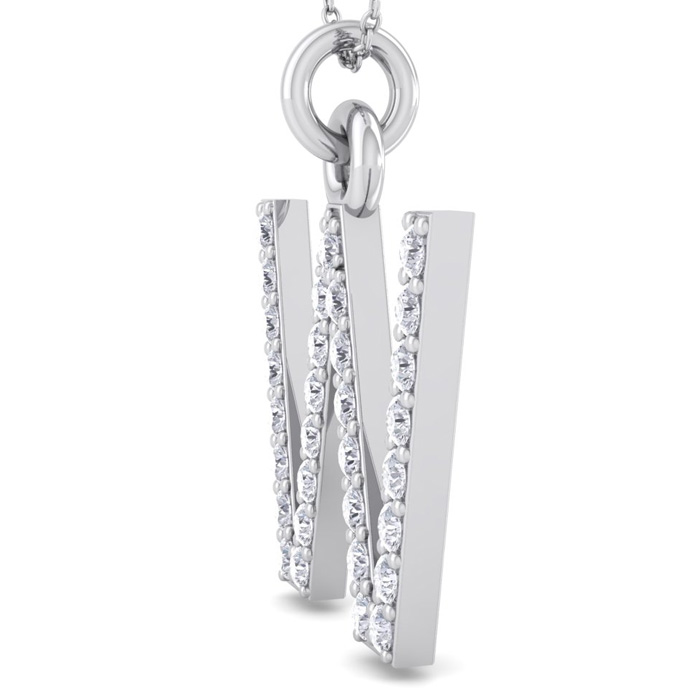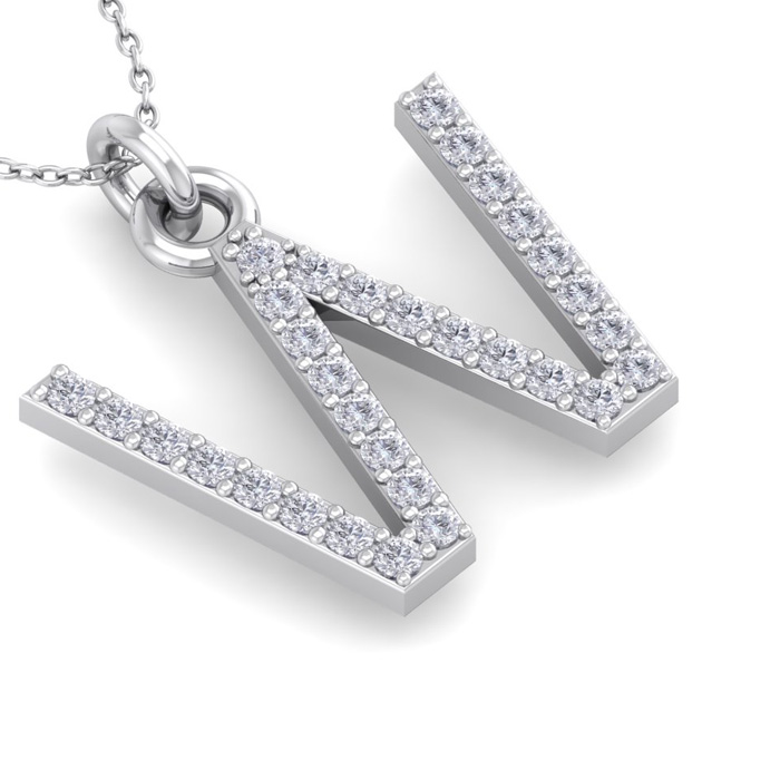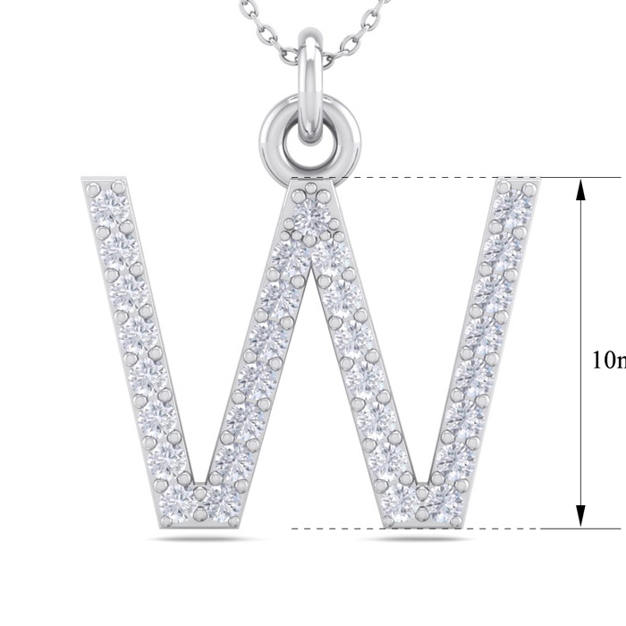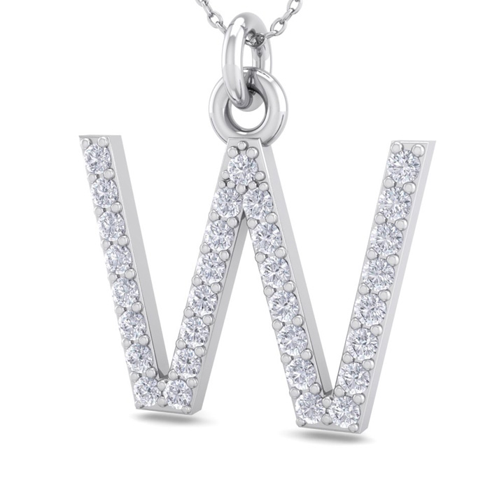 Letter W Diamond Initial Necklace In 14 Karat White Gold With 31 Natural Diamonds