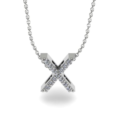 Letter X Diamond Initial Necklace In 14K White Gold With 13 Natural Diamonds
