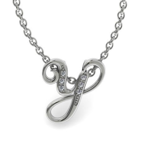 The Y initial necklace you have been waiting for! Check out our newest initial series in solid 10 karat white gold with 6 shimmering diamonds, including an 18 inch cable-rope chain with spring-ring clasp. Diamond color I-J, diamond clarity I2-I3.