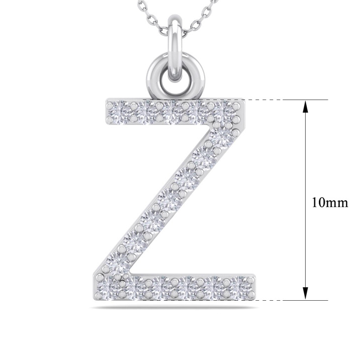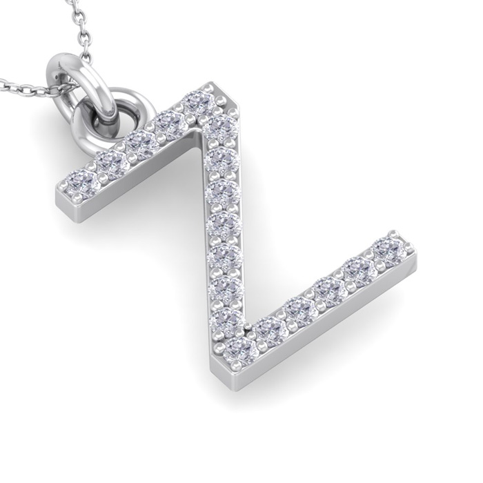 Letter Z Diamond Initial Necklace In 14 Karat White Gold With 18 Natural Diamonds
