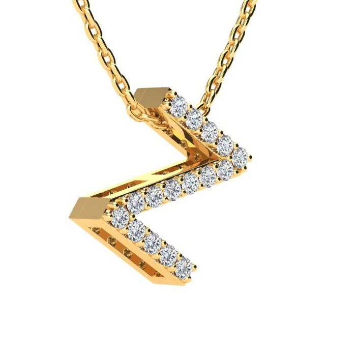 Letter Z Diamond Initial Necklace In 14K Yellow Gold With 13 Natural Diamonds