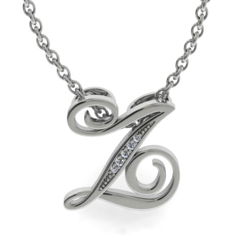 The Z initial necklace you have been waiting for! Check out our newest initial series in solid 10 karat white gold with 5 shimmering diamonds, including an 18 inch cable-rope chain with spring-ring clasp. Diamond color I-J, diamond clarity I2-I3.
