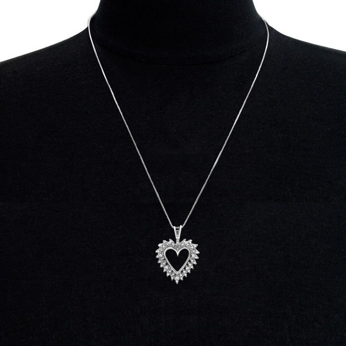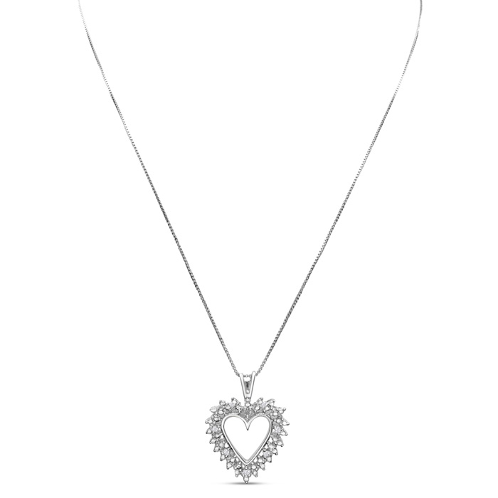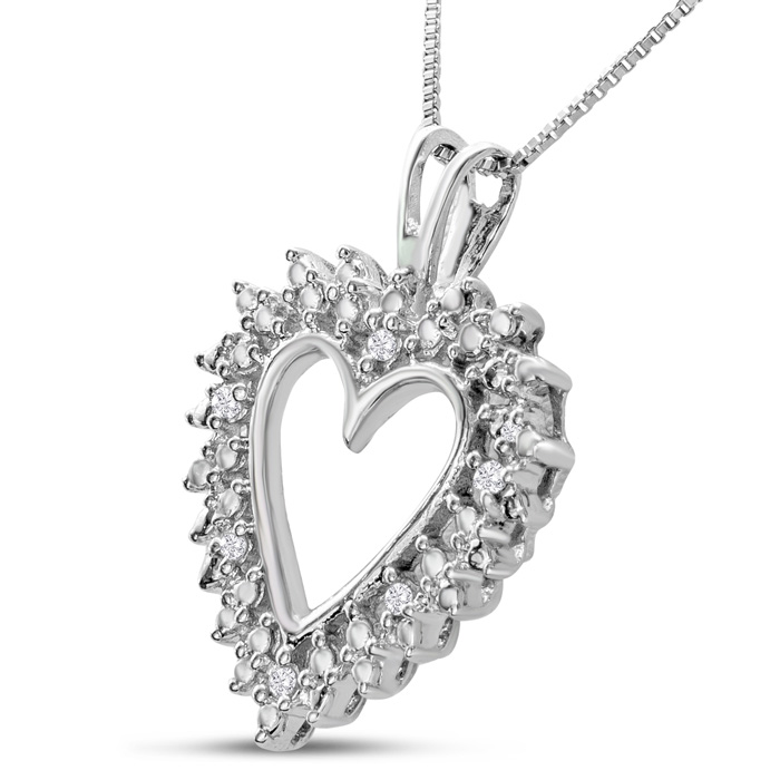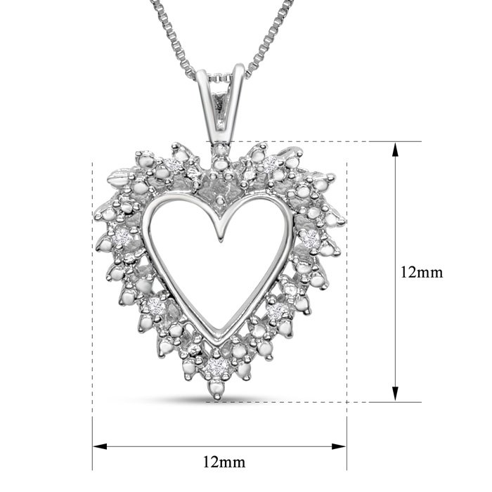 0.07 Carat Natural Diamond Heart Necklace In Sterling Silver, 18 Inches