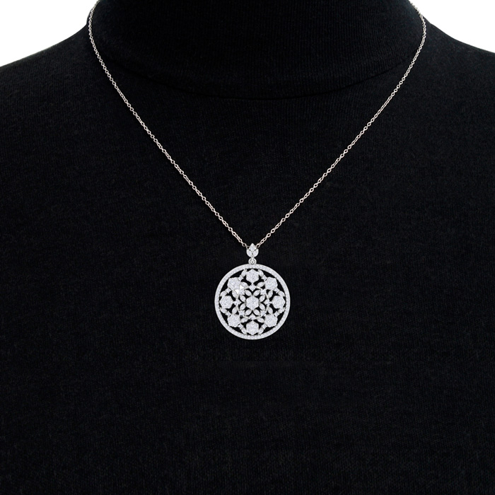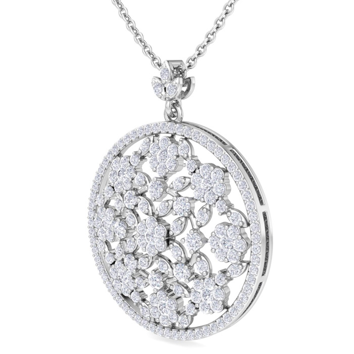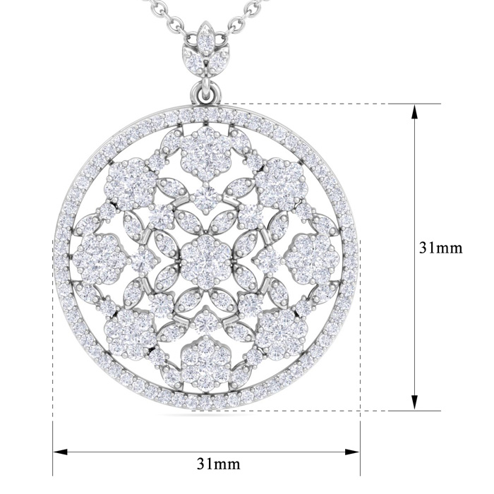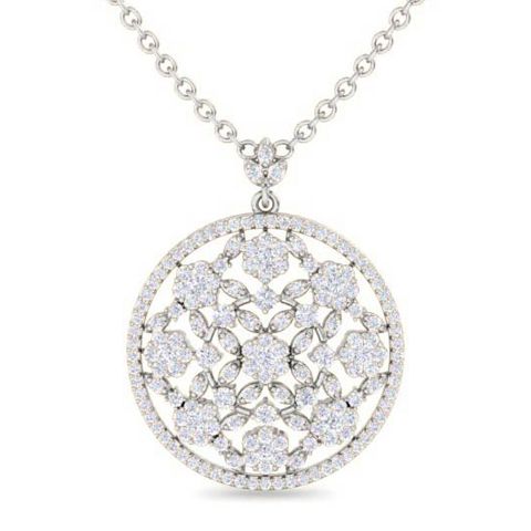 1 1/2 Carat Natural Diamond Ornate Circle Necklace In 14 Karat White Gold, 18 Inches